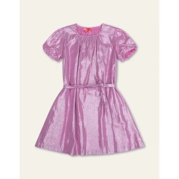 Voel je een prachtige prinses, zeemeermin of parel in dit oogverblindende glanzende jurkje. Met heerlijk mouwtjes, geplooide halslijn en matching ceintuur. - 75% Katoen, 25% Metallic yarn - Voering: 100% Katoen - Gemaakt in India