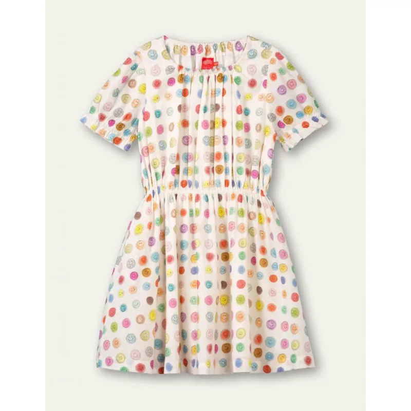 Zomers zoet jurkje met al je favoriete planeten erop die samen wel op polkadots lijken. De plooitjes in de taille, boord en om de mouwen geven een mooi effect. Dit jurkje is geheel gevoerd met een kanten bies. - Met kant gevoerd - Slim fit