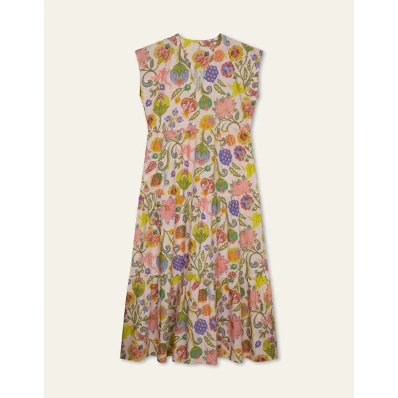 Heerlijke luchtige maxi dress van katoen met diepe V-hals, kapmouwen en een prachtig afgewerkte strokenrok. Voorzien van praktische zakken in de zijkant. Perfect voor zomerse dagen vol comfort en stijl. - 100% Katoen - Strokenrok - Kapmouwen - Zakken in zijkant - Gemaakt in Portugal