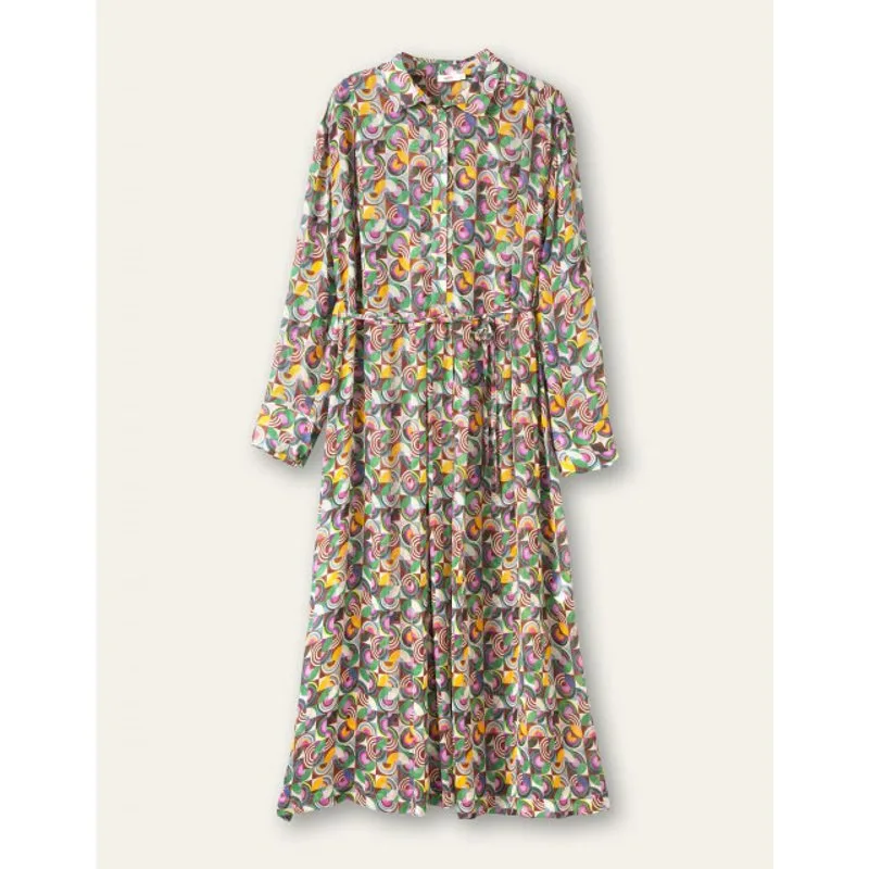 Zwier sierlijk en vrij in deze weelderige, losvallende viscose jurk. Met bijpassend ceintuur, groene knoopjes en plooitjes op de juiste plekken. De slipdress is in poederroze zodat de geometrische vormen en kleuren mooi uitkomen. - 100% Viscose - Met slipdress - Loose fit - Multicoloured