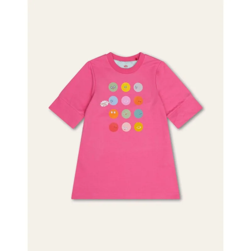 A smile a day, keeps the sjacherijn away! En daarom hebben we lekker veel kleurrijke smileys op dit katoenen jurkje gestikt. - 96% Organic Katoen, 4% Elastaan - Gemaakt in Bulgarije