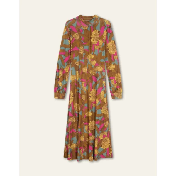 Geïnspireerd door chrysanten en bladeren maakten we een digitale tekening dat de basis voor het Coraline dessin werd. Een fleurig dessin dat past bij deze enkellange jurk met lage col gemaakt van tencel met brushed wol aan de binnenkant. Warm, vrolijk en op en top vrouwelijk. - Regular fit - Steekzakken - Gemaakt in Portugal - 70% Tencel, 30% Wol - Het model is 174cm en draagt maat 36