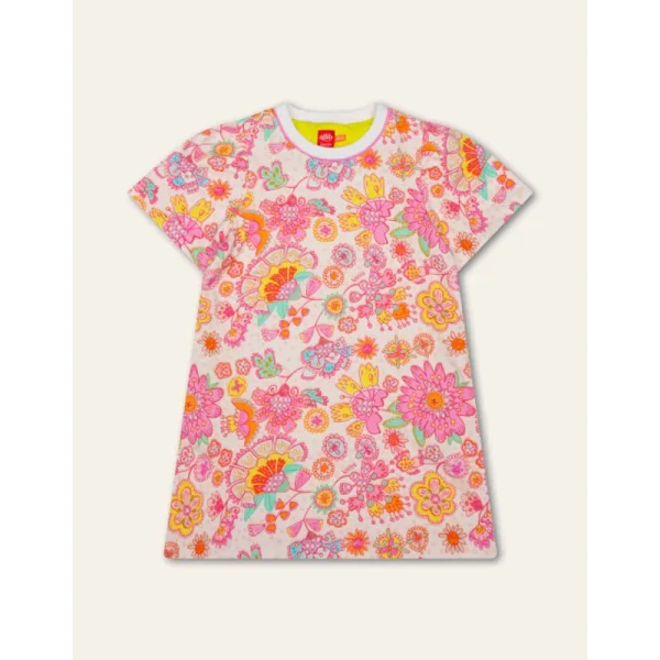 De bloemetjes op dit katoenen zomerjurkje zijn van ons Alexi dessin. Een dessin uit 1992 die we opnieuw hebben getekend en ingekleurd om het weer helemaal van nu te maken. - 95% Organic Katoen, 5% Elastaan - Gemaakt in Portugal