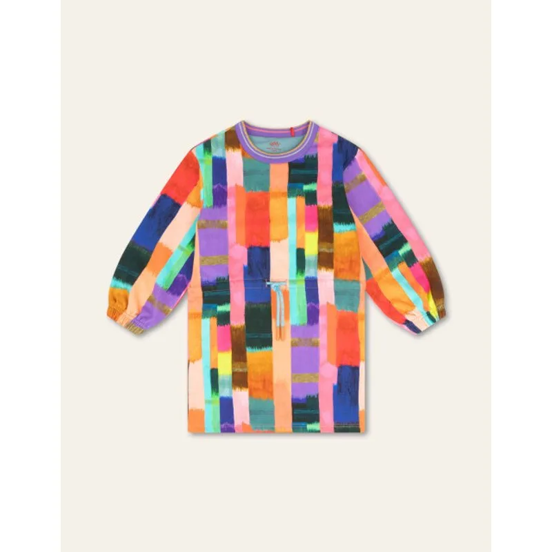 De strepen en banen van dessin Taki zijn getekend met zoveel mogelijk kleuren en een glitterpen. Het staat helemaal gezellig op dit vrolijke, losvallende jurkje. - Loose fit - Gemaakt in Bulgarije - 96% Organic Katoen, 4% Elastane