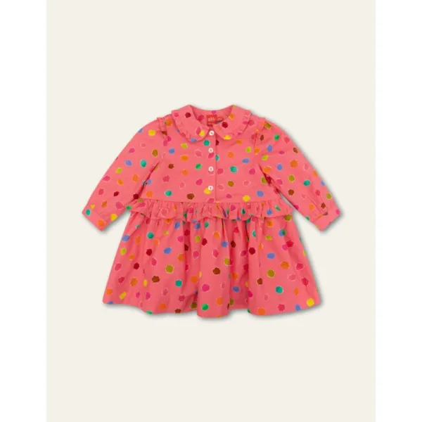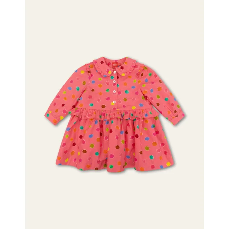 Dit wafelkatoenen jurkje straalt door de vrolijkheid van print Nessy Dots. Dit dessin ontstond door stukjes gekleurd papier te scheuren als eitjes van ons Monster Nessie. -100% Katoen -Gemaakt in India