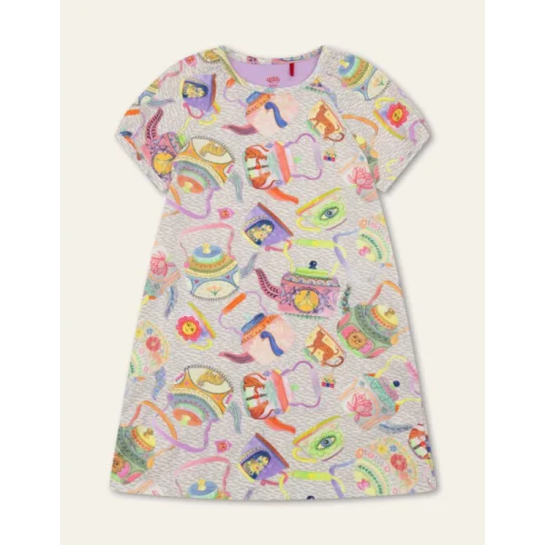 Chai betekent thee in het Hindi en heerst er een echte theecultuur in India. Dit zachte organisch katoenen jurkje met fladder mouwtjes staat vol met versierde theepotten en kopjes! -96% organisch katoen, 4% elastaan -Gemaakt in Griekenland