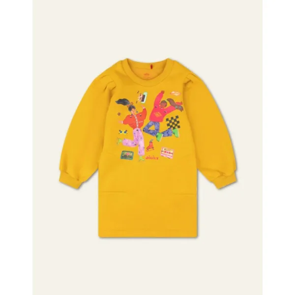 Van trekpoppetjes maakten we coole skatende meiden. Ze stralen op deze heerlijke sweater dress, want in de stof hebben we ook glitterdraad gebreid. Je kan hier fijn mee spelen, rennen en skaten. In de mouwen met dropped shoulders zit extra veel volume. - Katoen met Lurex - Regular fit - Gemaakt in Noord-Macedonië