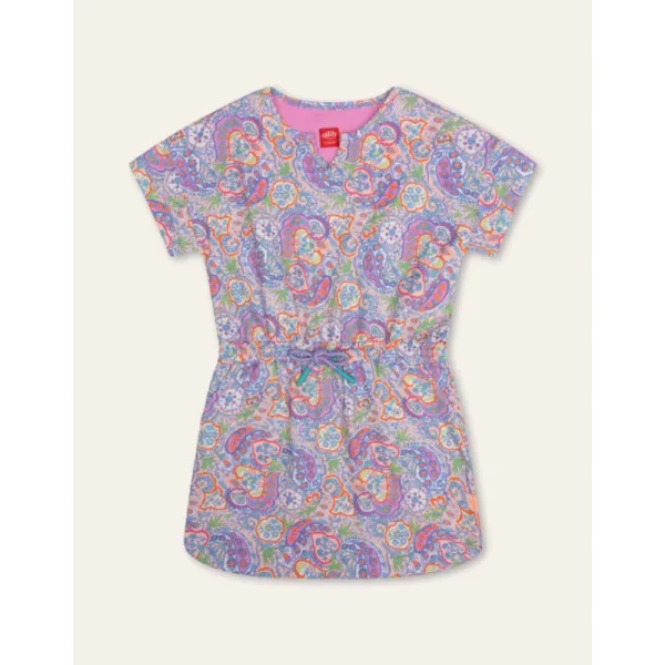 Dit zomerjurkje heeft een elastische taille waar je heerlijk vrij in kan bewegen. Het dessin Petal Park Paisley met fijne bloemen past er goed bij. - 94% Organic Katoen, 6% Elastaan - Gemaakt in Portugal