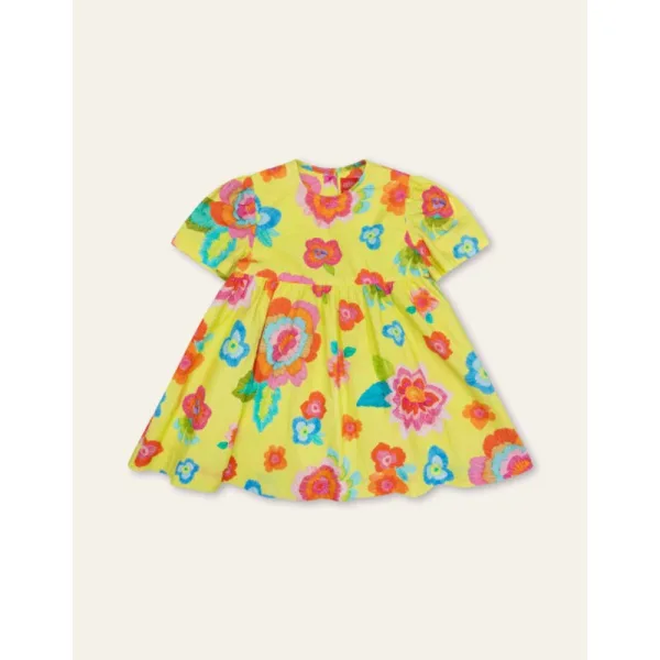 Met de hand tekenden we bloemen en kleurden ze met streepjes in en zo werd dessin Marker Flowers geboren. Bekijk deze details van dichtbij terwijl je zwiert in dit katoenen luchtige zomerjurkje met lichte pof in de mouwen. - 100% Katoen - Gemaakt in India