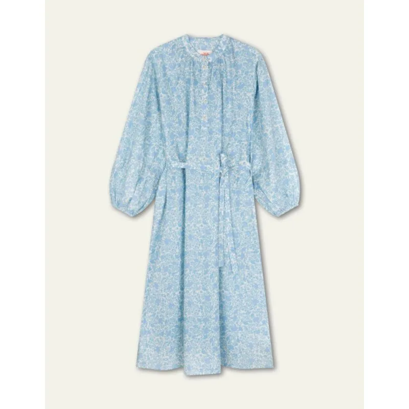 Het dessin Mientje met haar lieve bloemetjes geeft een vrolijke elegantie dat perfect past bij de losheid van deze jurk. De knoopjes van deze heerlijke jurk gaan tot de helft. De wijde fit met gathering bij de mouwen en langs de hals geven nog meer luchtigheid. - 100% Katoen - Gemaakt in Portugal - Het model is 171cm en draagt maat 36