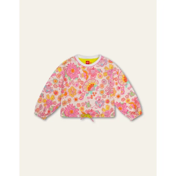 De bloemetjes op deze katoenen losvallende trui zijn van ons Alexi dessin. Een dessin uit 1992 die we opnieuw hebben getekend en ingekleurd om het weer helemaal van nu te maken. - 95% Organic Katoen, 5% Elastaan - Gemaakt in Portugal