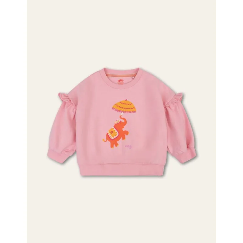 Vrolijke roze sweater met ruffels op de schouders en een schattige print van een olifant met parasol. -100% Katoen -Speelse ruffels op de schouders -Gemaakt in India