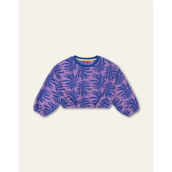 Zo zien vogels de palmbomen vanuit de lucht— geweven in jacquard op een zachte terry towel. Deze croped sweater met elastiek bij de mouwen en onderrand zit zó lekker, dat je in de zomer niets anders meer aan wilt! -80% katoen, 20% polyester -Cropped tot op de navel -Gemaakt in Portugal