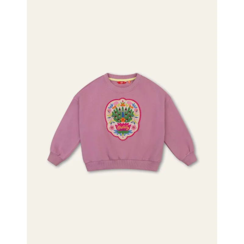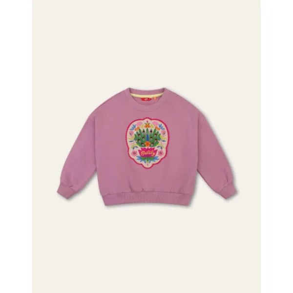 Deze sweater heeft een oilily-badge met Indiase elementen, waaronder een pauw en een lotusbloem. Gemaakt van 100% biologisch katoen, zacht, comfortabel en perfect voor elke dag. -100% Organisch Katoen -Gemaakt in Portugal