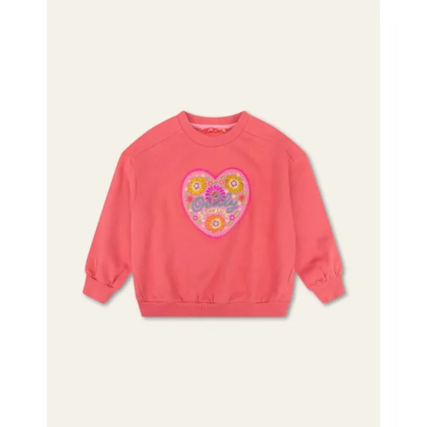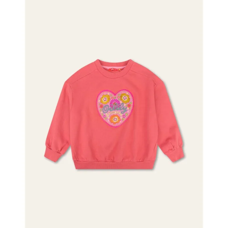 Een fijne, gezellige trui voor elke dag met een beeldige hartvormige badge. Geborduurd op je buik met onze naam en omringd door grote en kleine bloemen. - Loose fit - Gemaakt in Portugal - 100% Organic Katoen