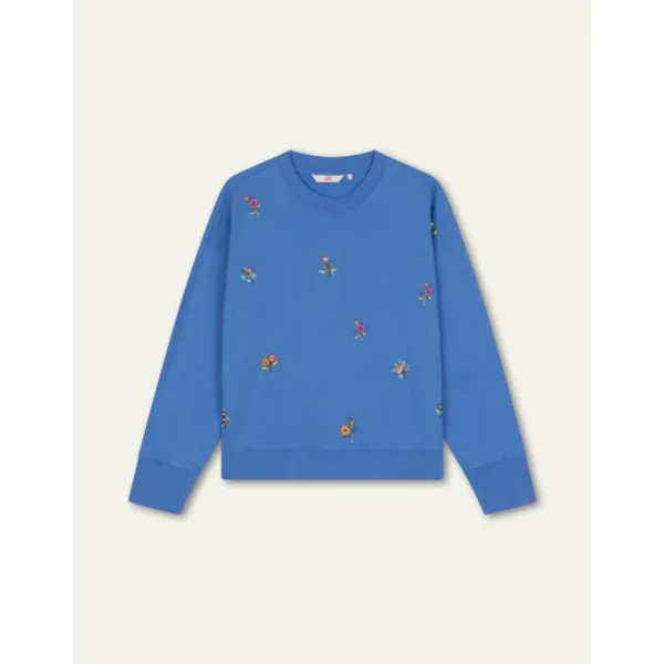 Lente is voor laagjes en dan is een vrolijke sweater een goed idee. Van dichtbij zie je pas hoe mooi en met zorg de prachtige geborduurde bloemetjes zijn. - 100% Organic Katoen - Gemaakt in India - Het model is 178cm en draagt maat 36