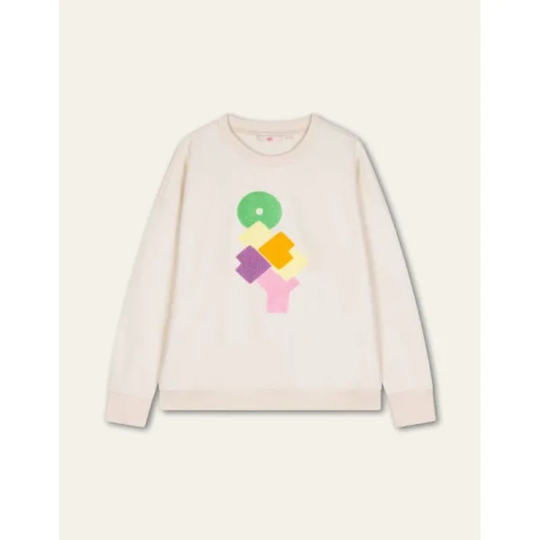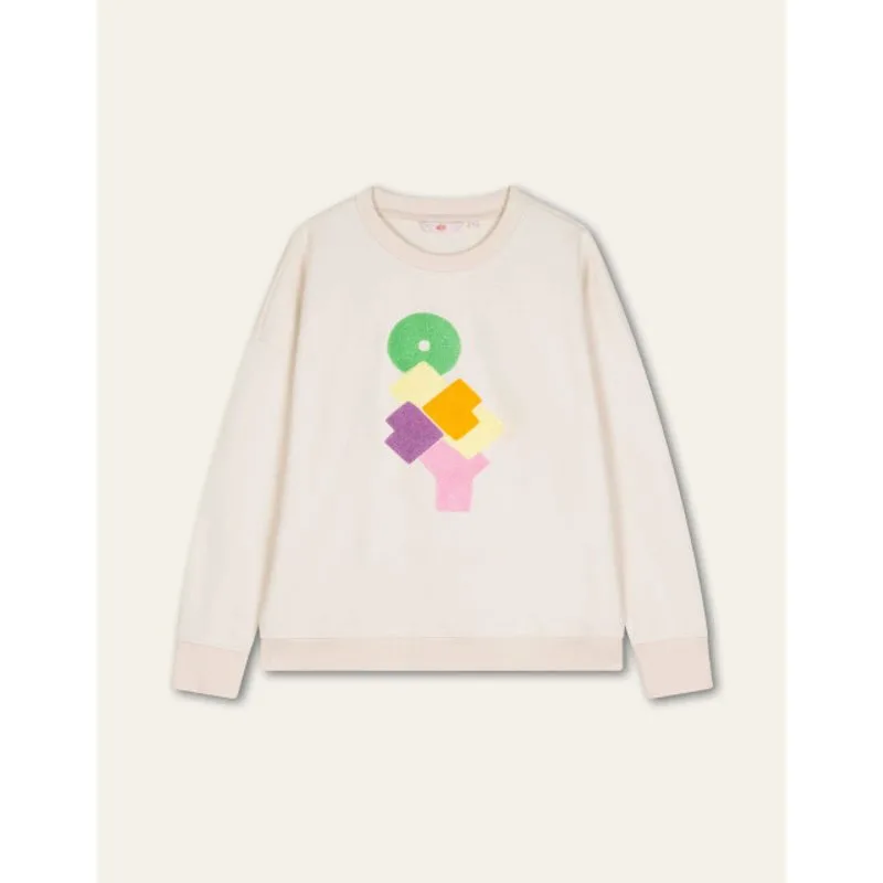 Speelse sweater waarbij de letters gestikt zijn met een techniek dat towling heet om het artwork structuur te geven. - 100% GOTS Organic Katoen - Gemaakt in N-Macedonië