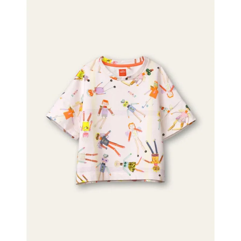 Niet alle superhelden hebben een cape en er zijn ook engeltjes zonder vleugels. Deze robo-engeltjes zien er allemaal anders uit. Welke vind je het leukst; die met de rossige haren, die ene met gouden vleugels of die met de gele stekels? De robo-engeltjes op dit zachte bio-katoenen shirt vinden jou allemaal leuk en ze zijn helemaal klaar voor de start!