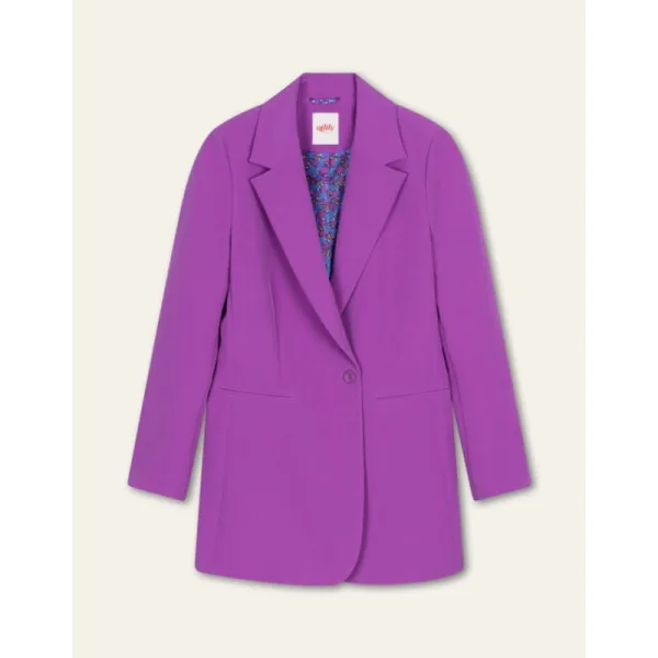 Dit eigentijdse colbert jasje heeft een ruime voorpand voor casual flair en sluit met een enkel knoop. De sprekende kleur zorgt voor een sterk fashion statement. De voering is prachtig diep donkerblauw met ons vrolijke, handgetekende Floral Ditsy dessin. - 90% Polyester met 10% Elastaan - Loose fit - Gemaakt in Polen