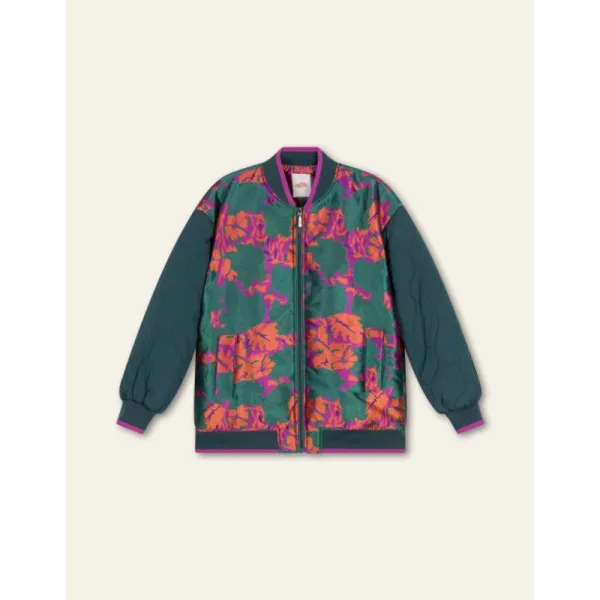 Ga voor glans en maak een stylish statement in deze oversized bomber met padded mouwen. Het dessin is prachtig jacquard geweven en dit geeft de florals een speels reliëf. De sportieve hals, cuffs en rand maken het helemaal af. - Regular fit - Gemaakt in China - Polyester, Polyamide, Elastane - Het model is 173cm en draagt maat 36