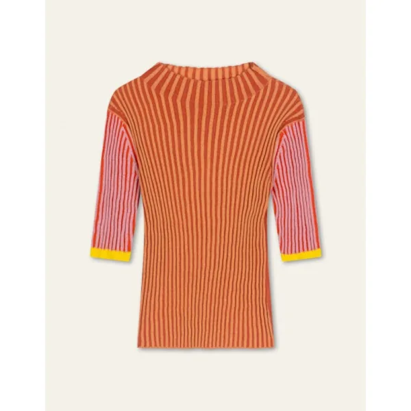 Deze top met tweekleurige rib heeft een stylish fit. De fully fashioned details zorgen ervoor dat de rib mooi op de naden valt en de aangebreide halslijn legt het accent op jouw stralende gezicht. - 100% GOTS-gecertificeerd biologisch katoen - Regular fit - Gemaakt in China