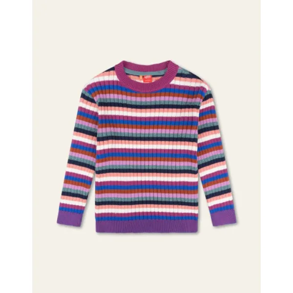 Wanneer het buiten guur wordt, is een fijne trui altijd fijn. Zoals deze gestreepte katoen gebreide trui met glitter yarn. Aan de onderkant komen de kleuren samen in een melange. Om het model van je wollen items goed te houden, raden we aan dit kledingstuk altijd opgevouwen in je kast te leggen. - Loose fit - Gemaakt in Portugal - 100% Katoen