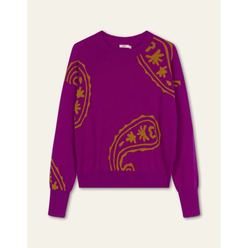 Heerlijke trui met een blow-up intarsia gebreide Paisley. De boord aan hals is met veel zorg en heel gedetailleerd gebreid en de mouwen lopen uit in hoge, smalle manchetten. Om het model van je wollen items goed te houden, raden we aan dit kledingstuk altijd opgevouwen in je kast te leggen. - Regular fit - Gemaakt in China - 70% Responsible Wool Standard Wol, 30% The Good Cashmere Standard Cashmere - Het model is 168cm en draagt maat 36