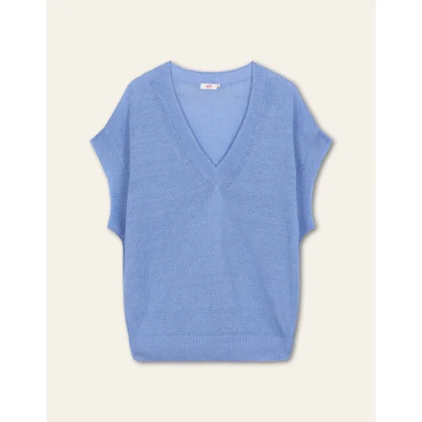 Gemaakt van 100% linnen garen waardoor deze top een natuurlijk reliëf heeft met structuur en lichte transparantie. De diepe V-hals geeft het nog een extra zomers gevoel. - 100% Linnen - Regular fit - Gemaakt in Roemenië