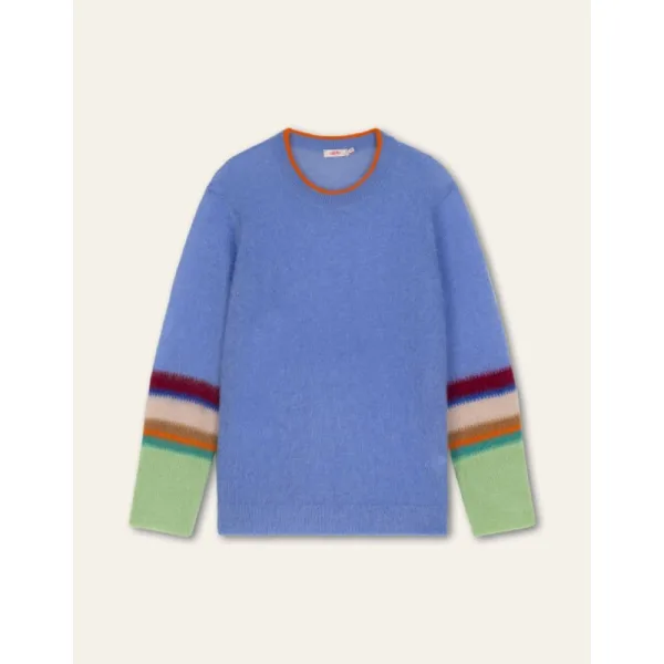 Brushed mohair trui met multi-colour stripes en een losse, vrije fit. De kleurovergangen op de mouwen hebben een speels patroon zodat je een gradient krijgt. Wij raden aan dit item gevouwen in de kast te bewaren en niet op te hangen om de vorm te behouden. -50% Mohair, 30% Polyamide, 20% Wol -Gemaakt in Roemenië, gebrushed in Italië