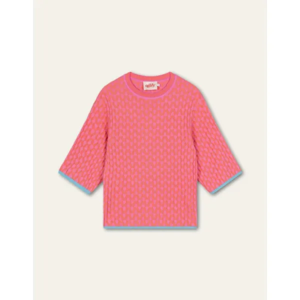 Deze trui is in een prachtig patroon met jacquard gebreid wat het een fijne textuur geeft. De losse fit zorgt ervoor dat dit een instant lievelings item om te dragen wordt. - 100% Organic GOTS Katoen - Gemaakt in Roemenië - Het model is 178cm en draagt maat 36