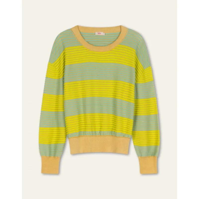 Deze trui is met verschillende garen gebreid, zo zijn de kleuren van katoengaren en de basis van de trui is een linnen garen. Hierdoor ontstaat er een spannende textuur met deels transparantie voor een luchtig, elegant en vrouwelijk item. - 100% - 100% GOTS-gecertificeerd biologisch katoen - Regular fit - Gemaakt in Roemenië