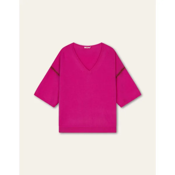 Pullover van heerlijk zachte kwaliteit met drop shoulder en 3/4-mouwen. Valt royaal en is langer aan de achterkant, met zijsplitten voor extra comfort. Mooi knitted detail bij de halslijn en subtiel accent op de schouder maken dit een elegant en speels item. Wij raden aan dit item gevouwen in de kast te bewaren en niet op te hangen om de vorm te behouden. - 70% wol en 30% cashmere - Zijsplitten - Drop shoulder met 3/4-mouwen - Subtiel detail op de schouderlijn - Gemaakt in China