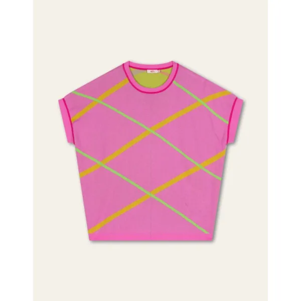 Als je een top zoekt die goed combineert, dan is deze mouwloze perfect. Deze jacquard ultra fine knit top is heel zacht en heeft een mooi aangebreid detail bij mouwopeningen. - 100% Organic GOTS Katoen - Gemaakt in China - Het model is 180cm en draagt maat 36