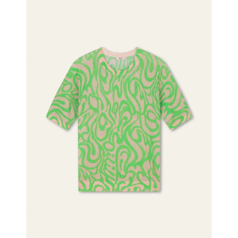 Deze ultra fine gebreide top is heel licht in look & feel. De top is eerst gebreid in een honeycomb patroon en daarna geprint, waarbij de print geheel doorloopt bij de naden. - 100% Organic Katoen - Gemaakt in China - Het model is 180cm en draagt maat 36