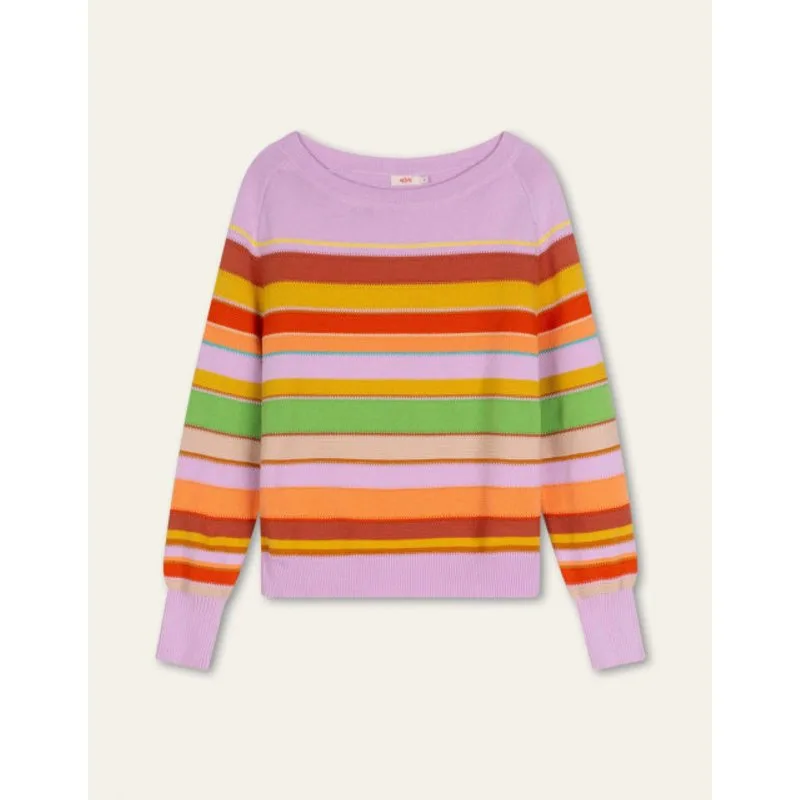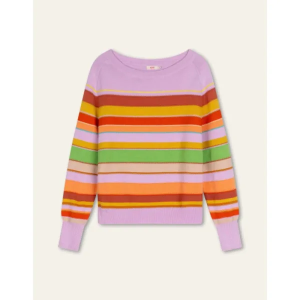 Een echte lentrui van organisch katoen met verschillende strepen in verschillende steken waardoor het een ambachtelijke look krijgt. Valt mooi op de tailleband van je broek of rok. - 100% GOTS-gecertificeerd biologisch katoen - Regular fit - Gemaakt in Roemenië