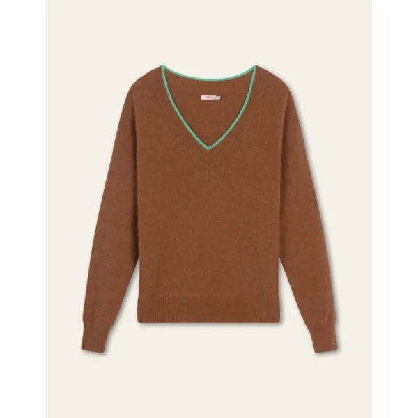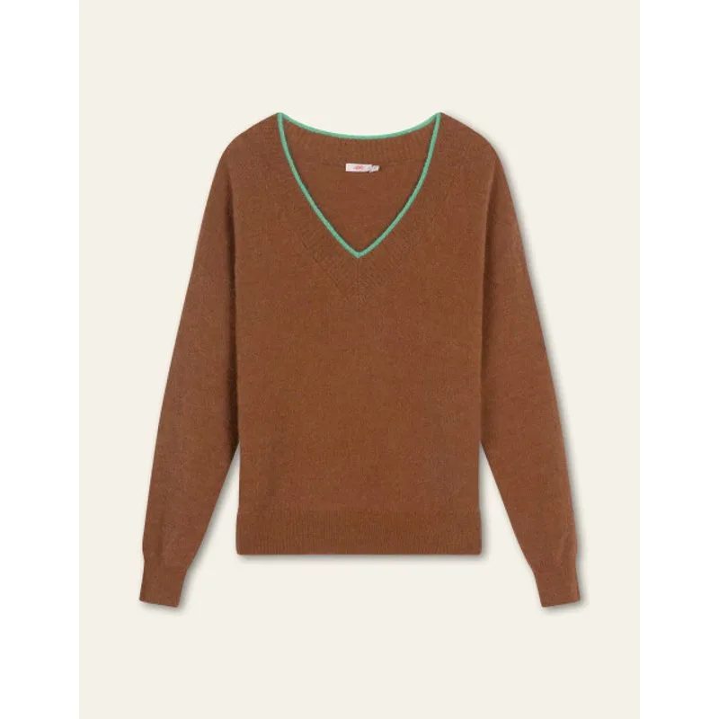 Is het de diepe V-hals, de contrastlijn op de schoudernaad, langs de hals of het superzachte wol? Het is vast alles samen dat deze trui zo heerlijk maakt. Warm met licht en los draaggemak. Om het model van je wollen items goed te houden, raden we aan dit kledingstuk altijd opgevouwen in je kast te leggen. - Regular fit - Gemaakt in Roemenië - Italiaans garen, Baby Suri Alpaca, Responsible Wool Standard Merino Wol - Het model is 174cm en draagt maat S