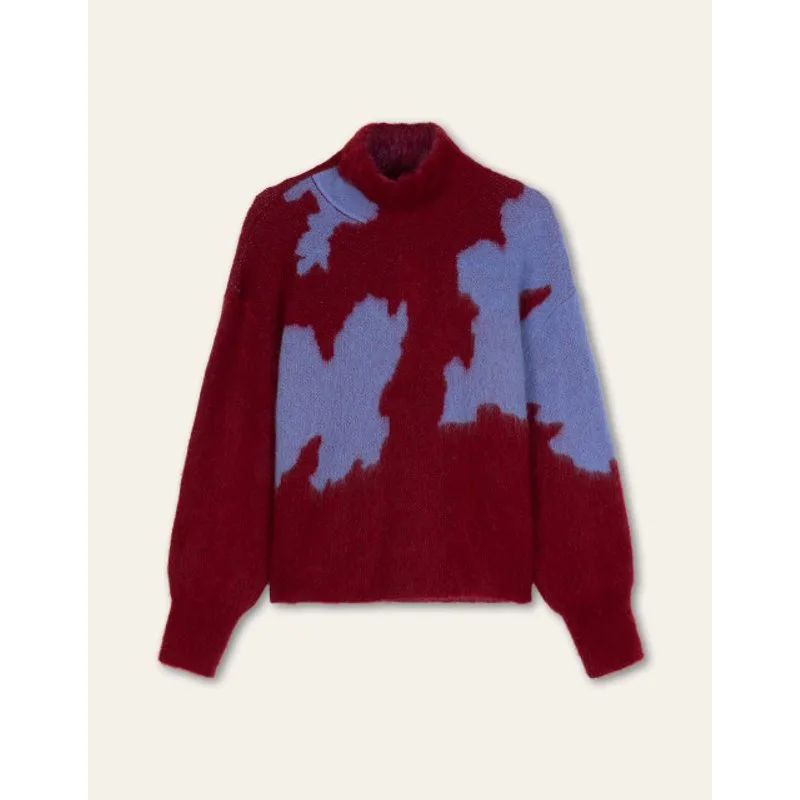 Prachtige mohair trui met turtleneck in allover brushed jacquard, waarbij het patroon gebaseerd is op herfstbladeren waar zonlicht doorheen schijnt. Het patroon loopt door over de mouwen en schouders. Wij raden aan dit item gevouwen in de kast te bewaren en niet op te hangen om de vorm te behouden. -34% RMS Certified Mohair, 34% RWS Certified Wool, 32% Polyamide -Gemaakt in Roemenië -Het model is 176cm en draagt maat 36