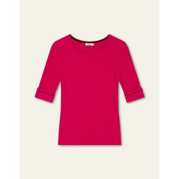 Slim fit truitje van stretchy Ecovero met elastan, perfect als layering piece maar ook mooi op zichzelf. De mouwen zijn omgeslagen met handstitch, zodat je de steekjes kunt loshalen. Delicaat ribstructuur geeft een subtiele textuur en een elegante uitstraling. Wij raden aan dit item gevouwen in de kast te bewaren en niet op te hangen om de vorm te behouden. - 72% Viscose, 23% elastaan - Gemaakt in China
