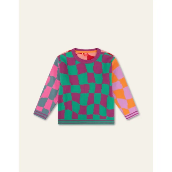 Wiggle is ons dessin van speelse ruitjes die lijken te wiebelen. Hier hebben we het jacquard gebreid met verschillende kleurcombinaties. Om het model van je wollen items goed te houden, raden we aan dit kledingstuk altijd opgevouwen in je kast te leggen. - Uniseks - Loose fit - Gemaakt in Portugal - 100% Katoen