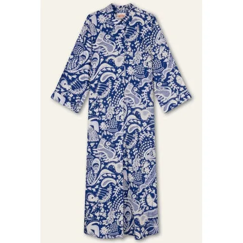 Deze luchtige linnen maxi jurk voor dames van Oilily combineert een elegante lengte met een speelse bloemprint in blauw en ecru. De lange pasvorm valt soepel om het lichaam, terwijl de klassieke kraag en knoopsluiting zorgen voor een verzorgd geheel. Dankzij het materiaal van 100% linnen voelt de jurk licht en koel aan, ideaal voor warmere dagen in het voorjaar.Details die het verschil maken Gemaakt van 100% linnen, een ademende stof met een natuurlijke uitstraling Lange maxi lengte voor een vrouwelijke, vloeiende look Driekwart rechte mouwen voor subtiele bedekking en comfort Klassieke kraag en volledige knoopsluiting aan de voorkant Blauw/ecru kleur met bloemprint voor een frisse, grafische touch Ontworpen zonder zakken voor een strakke, langgerekte lijn Onderdeel van de Boutique collectie, passend bij het voorjaarOntspannen en verzorgd de deur uitDeze jurk is geschikt voor dagen waarop je er verzorgd uit wilt zien, zonder lang voor de kast te staan. Combineer met sandalen voor een ontspannen daglook of met nette instappers voor een meer geklede uitstraling.Oilily: kleur en print met karakterOilily staat bekend om het gebruik van rijke kleuren en opvallende prints. De collecties worden ontworpen met oog voor detail en comfort, zodat je kleding kiest die niet alleen opvalt, maar ook fijn draagt in het dagelijks leven.Een comfortabele keuze voor lentedagen waarop je graag een lichte, lange jurk draagt.