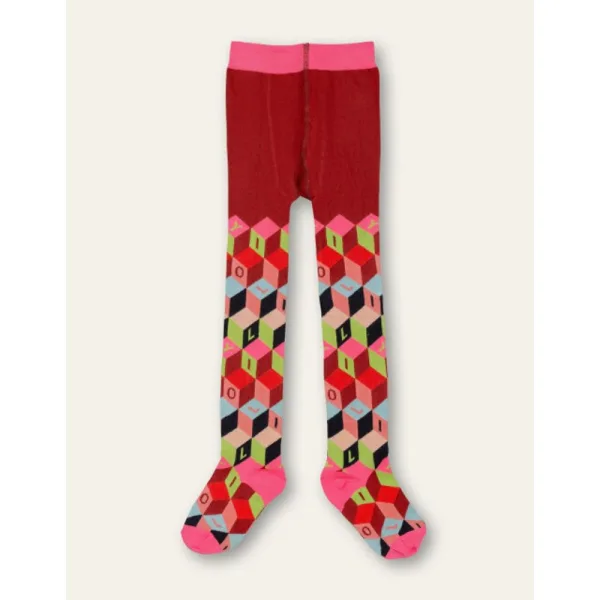 Benen vol met vrolijke blokjes, die gaan vast grote stappen in de wereld maken. In ketchup-rood met knalkleuren als geel, roze en babyblauw. - Gemaakt in Portugal - Katoenmix - Logo letters