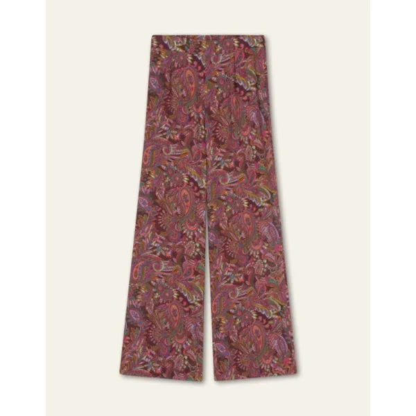 Wide-legged broek met een regular fit en een gezellig Everly Paisley dessin dat rijk is aan details. Deze viscose broek heeft steekzakken, een blinde zijrits en elastiek in de band achter. - Regular fit, elastische achterband - Blinde zijrits - Gemaakt in Polen - 90% Viscose, 7% Wol, 3% Elastane - Binnenbeenlengte bij maat 36 is 82 cm - Het model is 178cm en draagt maat 36