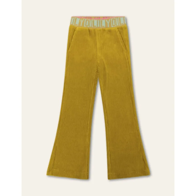 Ribfluweel blijft een najaarsfavoriet. Zo ook op deze flared legging. En met zo'n glitterende Oilily tailleband wil je deze wel elke dag aan. -75% Organic Cotton, 20% Polyester, 5% Elastaan -Gemaakt in Noord-Macedonië