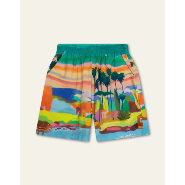 Laten we op pad gaan en trek vooral deze vrolijke shorts aan! Het dessin Hike View is een digitale tekening van mooie uitzichten in heerlijke, felle kleuren met een waterverfeffect. - 100% Katoen - Met drawstring - Gemaakt in India