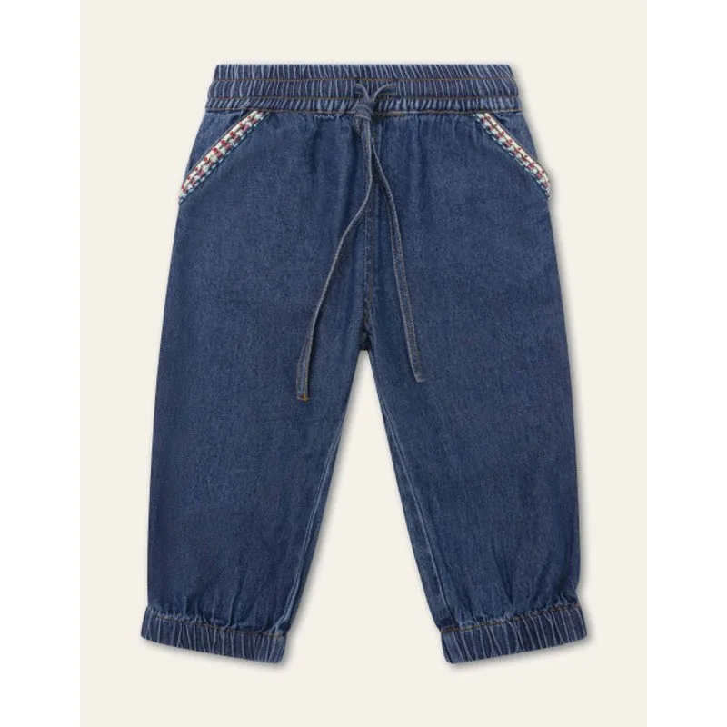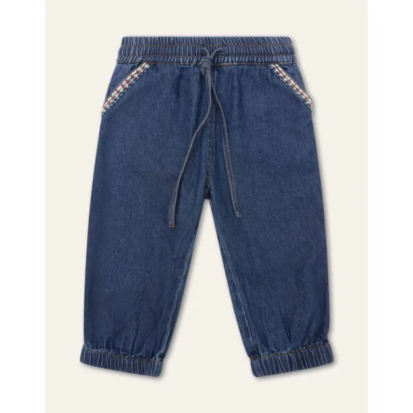 Comfortabele denim broek van katoen met matching drawstring. De onderkant van de pijpen hebben prettige stretch en de zakken zijn afgewerkt met een speelse bies. -100% Katoen -Gemaakt in India