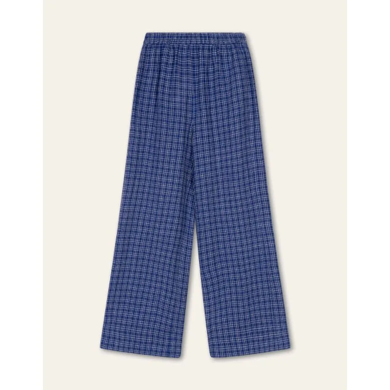 Casual broek van geweven katoen met een traditionele Indiase ruitprint. - 100% Linnen - Elastische taille - Relaxed fit - Het model is 175cm en draagt maat 36 - Gemaakt in India
