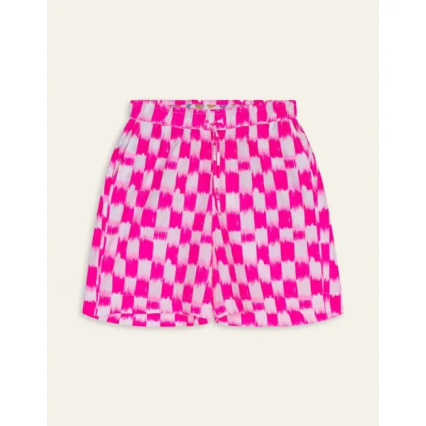 De felroze Ikat ruit springt in het oog door het gebruik van screenprinting. Combineer met de Barrenwort Blouse en je hebt een heerlijk zomers outfit! - 100% katoen