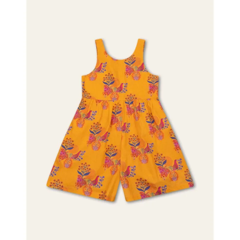 Deze playsuit is versierd met de Marigold Majesty print, geïnspireerd op de geluksbloem uit India. Met een open rug voor een luchtige, zomerse look. >- 100% Katoen -Open rug -Gemaakt in India