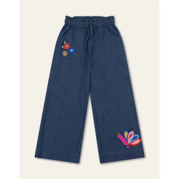 Superzachte broek in soepele denimlook van 100% katoen, met borduurdetail bij de zak en achterkant. -100% Katoen -Drawstring -Gemaakt in India