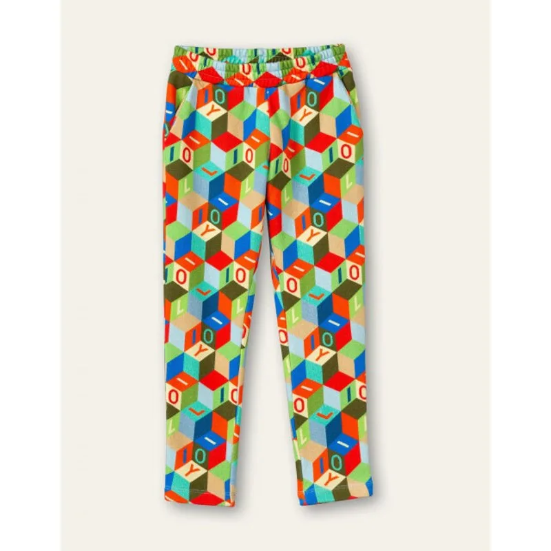 Stoere sweat pants met print vol met kleurrijke Oilily logo blokken. Heel vrolijk, speels en dus de perfecte jogger om allerlei avonturen in te beleven. - Gemaakt in Griekenland - Organic cotton met stretch - Drawstring - Steekzakken